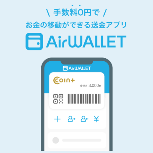 エアウォレットは「COIN+」※1を利用して、チャージ・支払い・送金・出金が無料でできる送金アプリです。